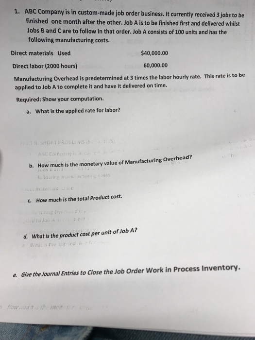 Title : Solved 1 Abc Company Is In Custom Made Job Order Busines Chegg Com Source : www.chegg.com Open New Window