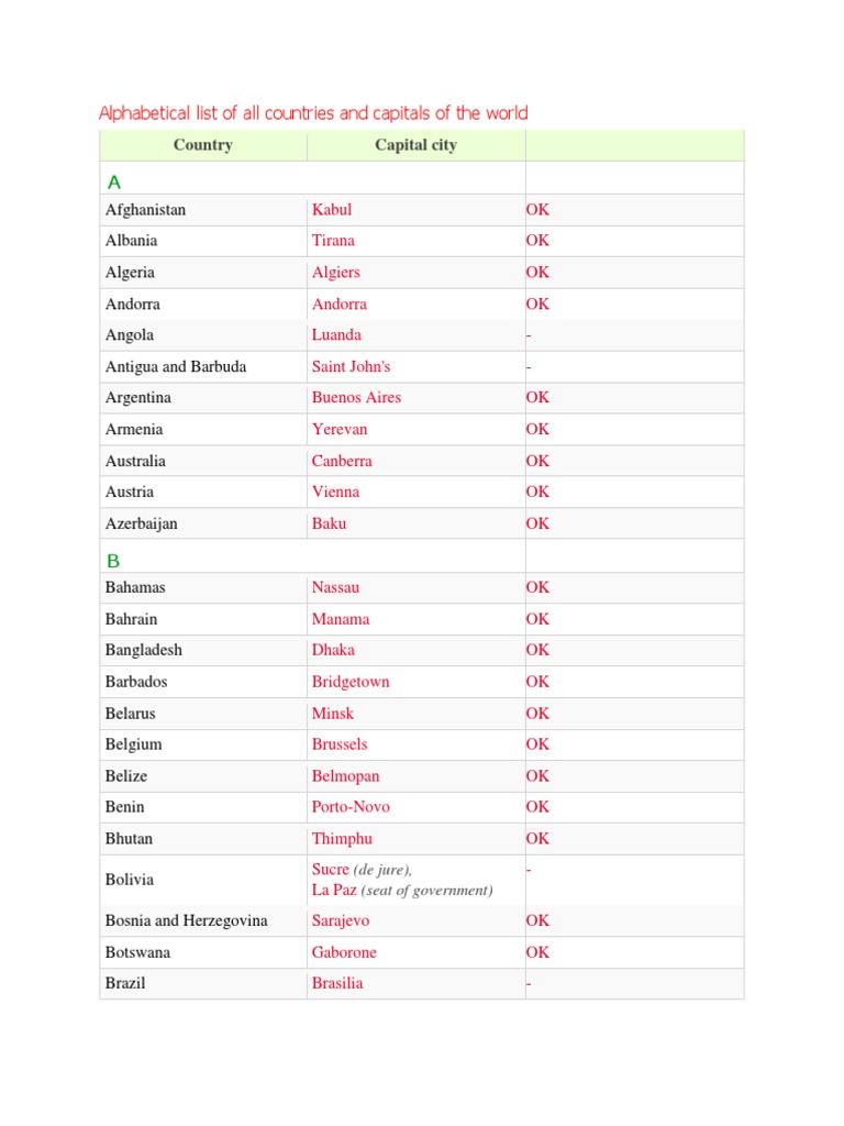 Title : Alphabetical List Of All Countries And Capitals Of Docx Source : www.scribd.com Open New Window