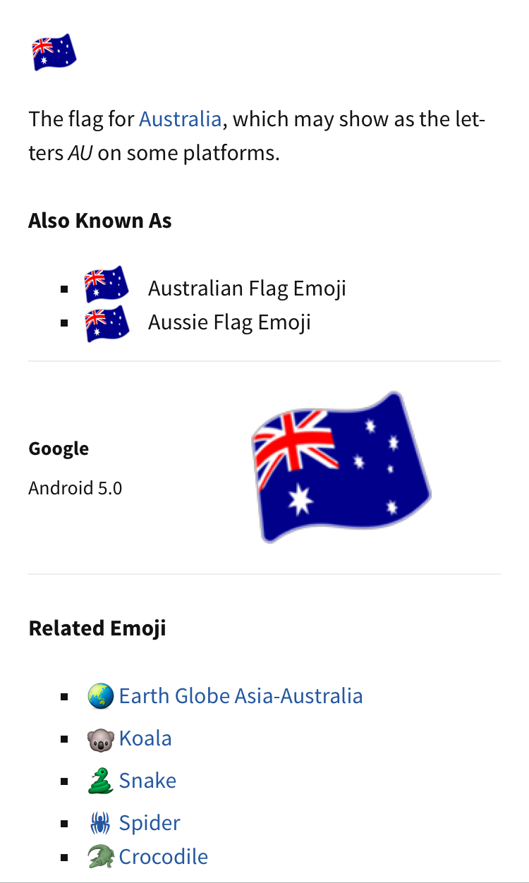 Title : Emojipedia On Twitter The Australian Flag Emoji Exists But Very Few Phones Support It Http T Co Fb5zp1uz1m Sadkoala Http T Co Rc5g8fk0ew Source : twitter.com Open New Window