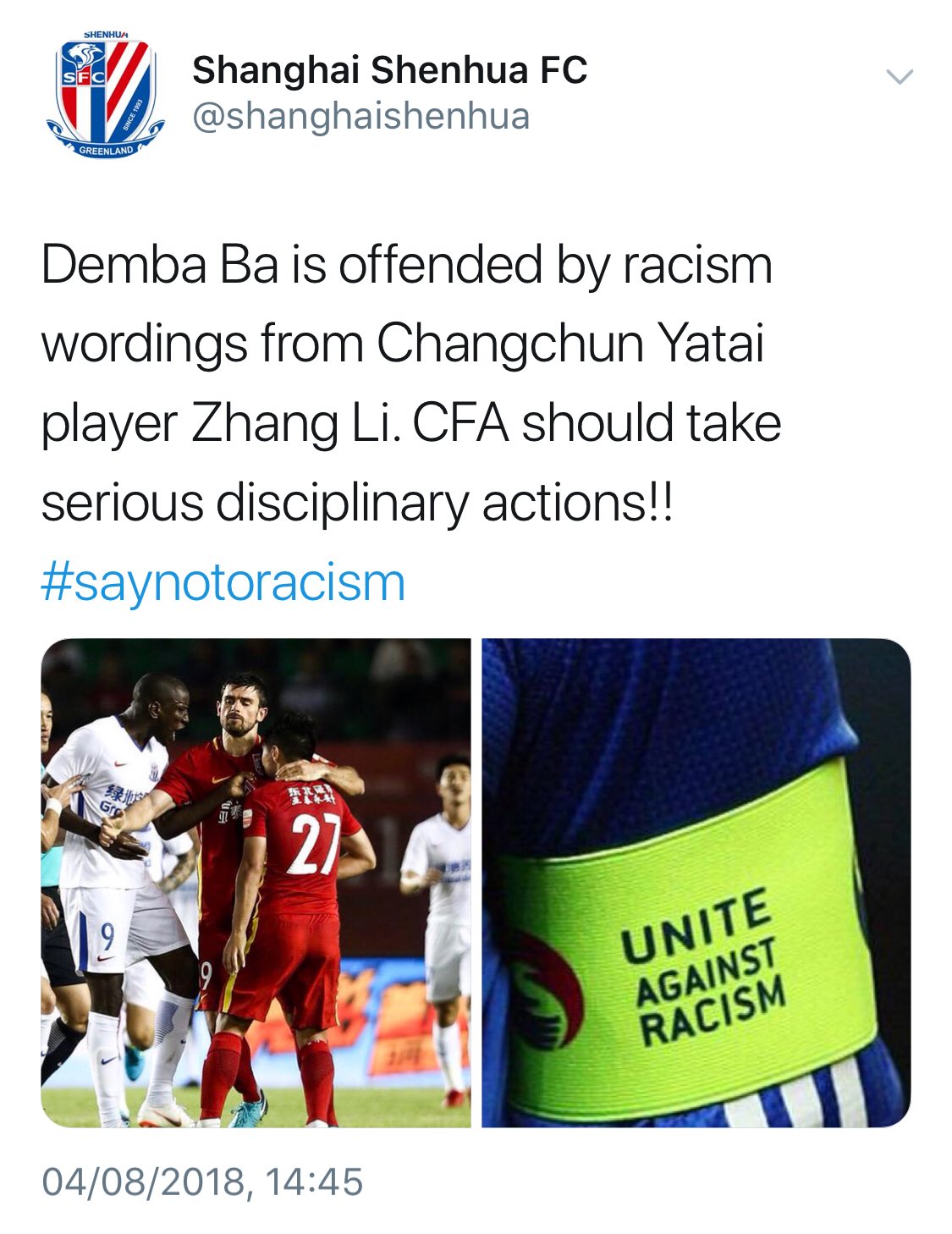 Title : Besiktas Polska On Twitter This Is To Declare That We Besiktas Fans Stay United With Dembabafoot Against Racism Fifacom Uefacom Is Requested To Monitor The Sanctions Of Cfa For The Source : twitter.com Open New Window