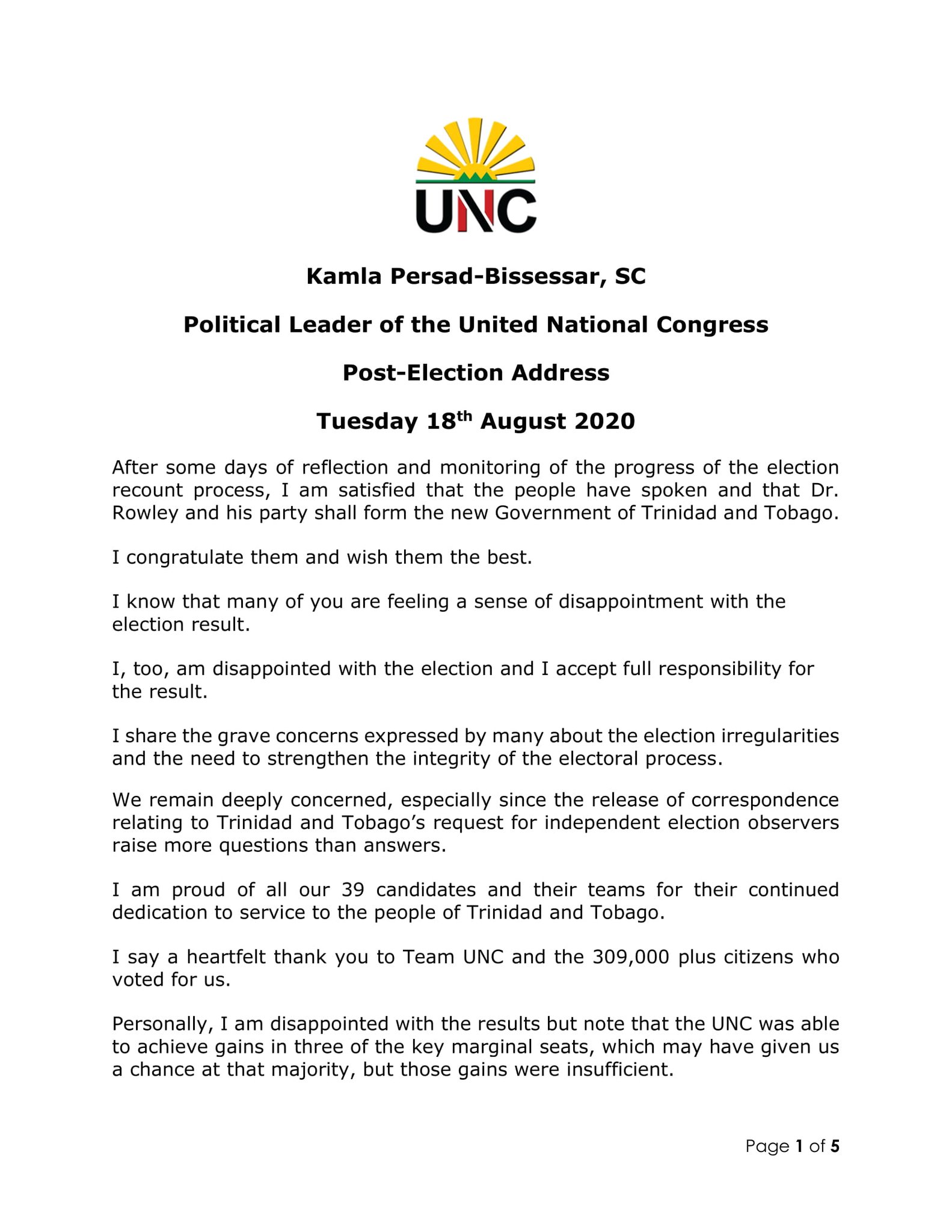 Title : Ttt Live Online Pa Twitter One Week After The General Election Unc Leader Kamla Persad Bissessar Has Conceded She Said I Am Satisfied That The People Have Spoken And That Dr Rowley And Source : twitter.com Open New Window