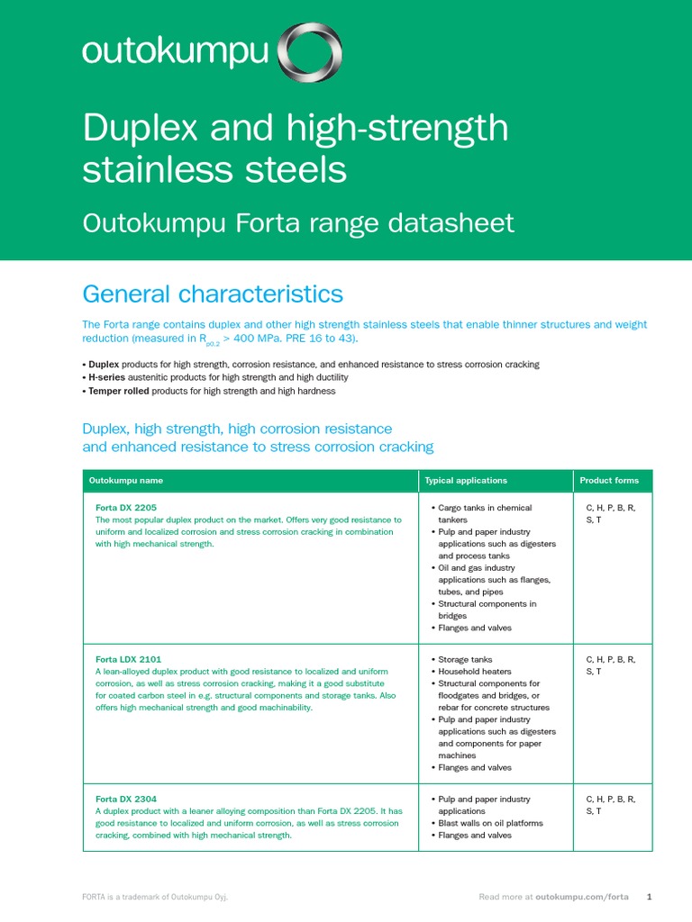 Title : Duplex And High Strength Stainless Steels Outokumpu Forta Range Datasheet Stainless Steel Corrosion Source : www.scribd.com Open New Window