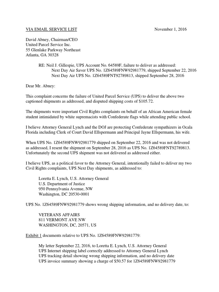 Title : Complaint To David Abney Chairman Ceo United Parcel Service Inc United Parcel Service Loretta Lynch Source : www.scribd.com Open New Window