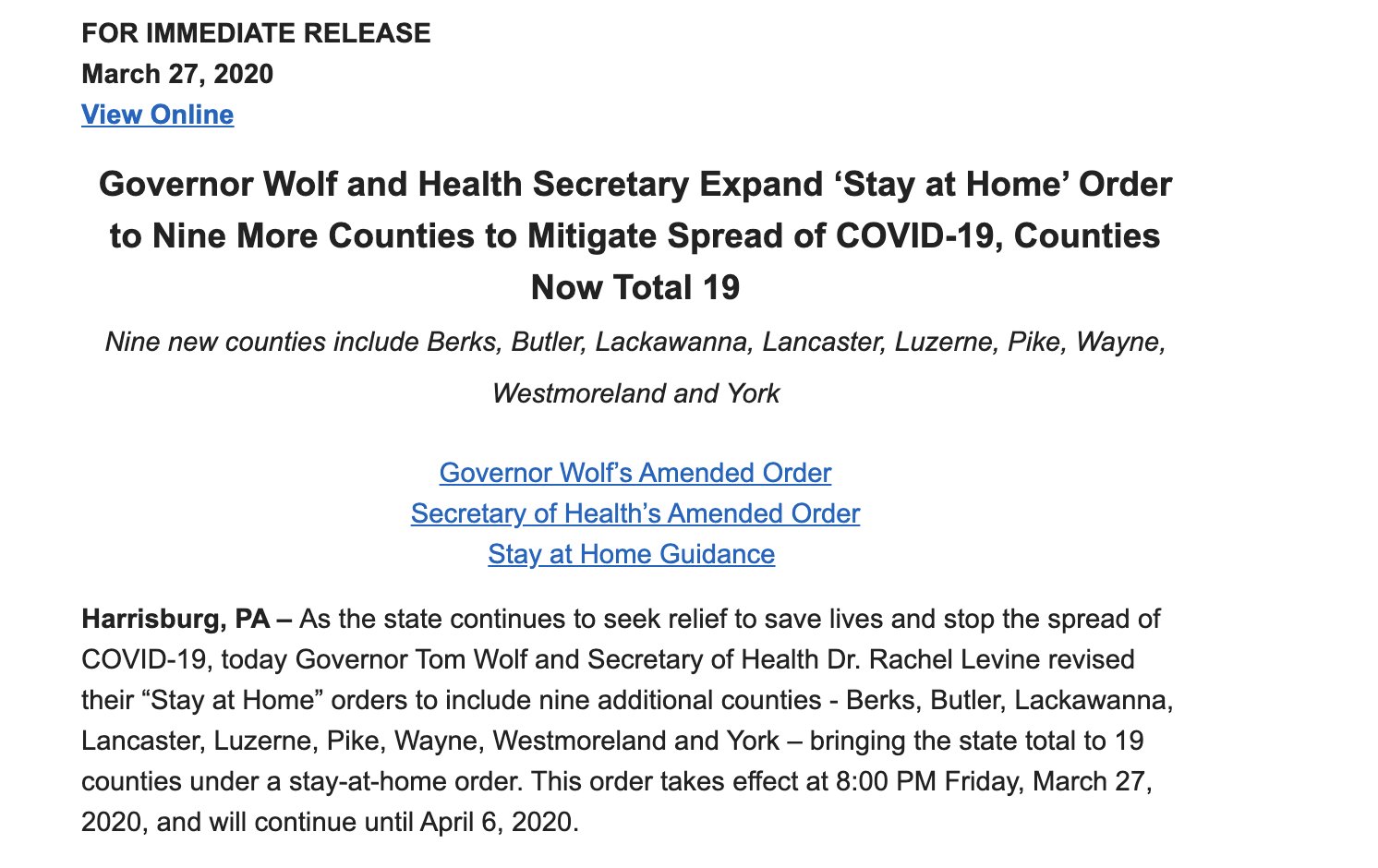 Title : Pennsylvania Capital Star On Twitter Breaking Governortomwolf Expands Stay Home Order Source : twitter.com Open New Window