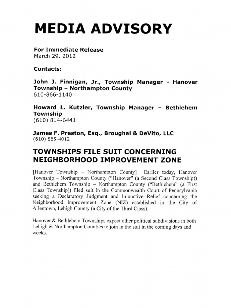 Title : Document Lawsuit Over Neighborhood Improvement Zone Niz Vs Allentown Source : www.scribd.com Open New Window