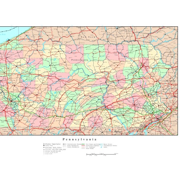 Title : Laminated Map Political Reference Map Of Pennsylvania Poster 20 X 30 Walmart Com Walmart Com Source : www.walmart.com Open New Window