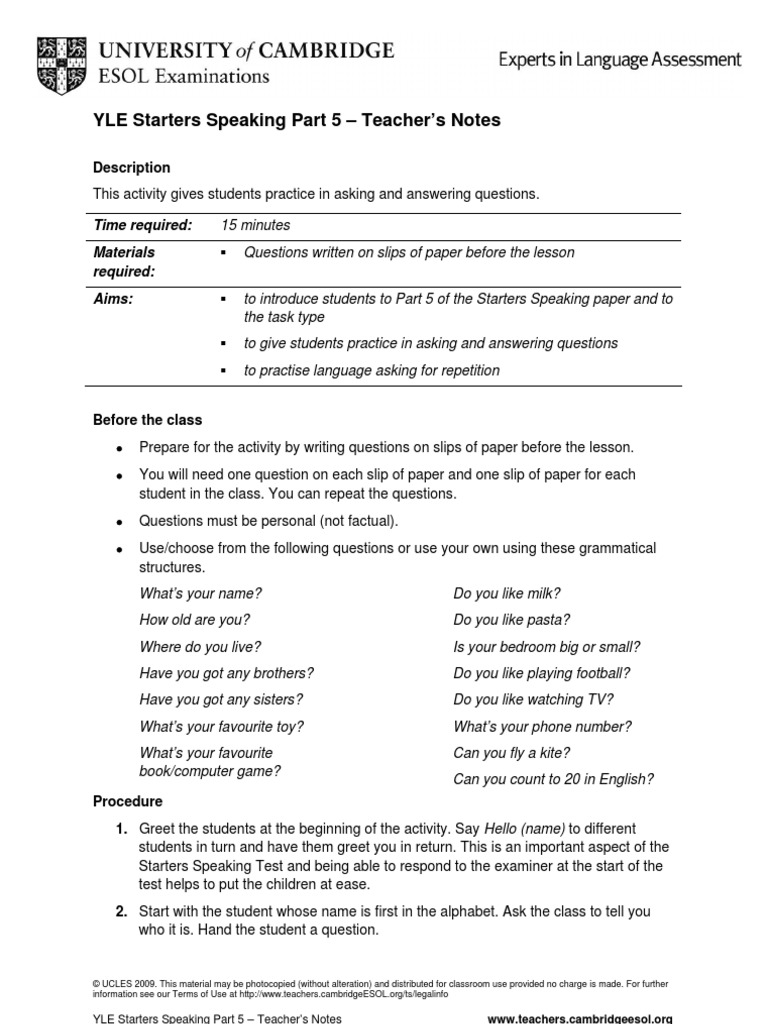 Title : Yle Starters Speaking Part 5 Question Test Assessment Source : www.scribd.com Open New Window
