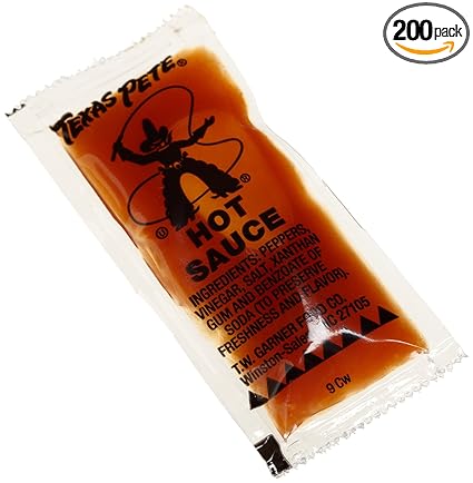 Title : Texas Pete Hot Sauce 7 Gram Portion Pack 200 Case Source : www.webstaurantstore.com Open New Window