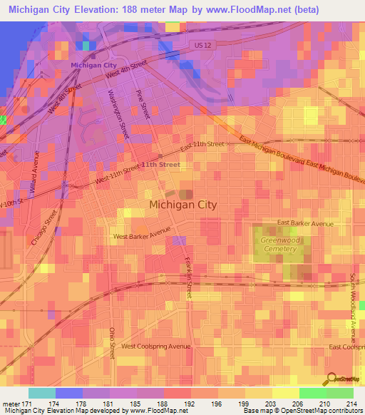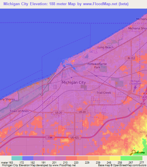 Title : Elevation Of Michigan City Us Elevation Map Topography Contour Source : www.floodmap.net Open New Window