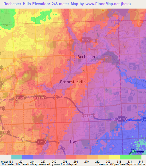 Title : Elevation Of Rochester Hills Us Elevation Map Topography Contour Source : www.floodmap.net Open New Window