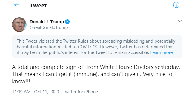 Title : Laurie Garrett On Twitter The President Tweeted Today That He Is Healed And Immune Twitter Deemed The Tweet False Covid19 Information Source : twitter.com Open New Window